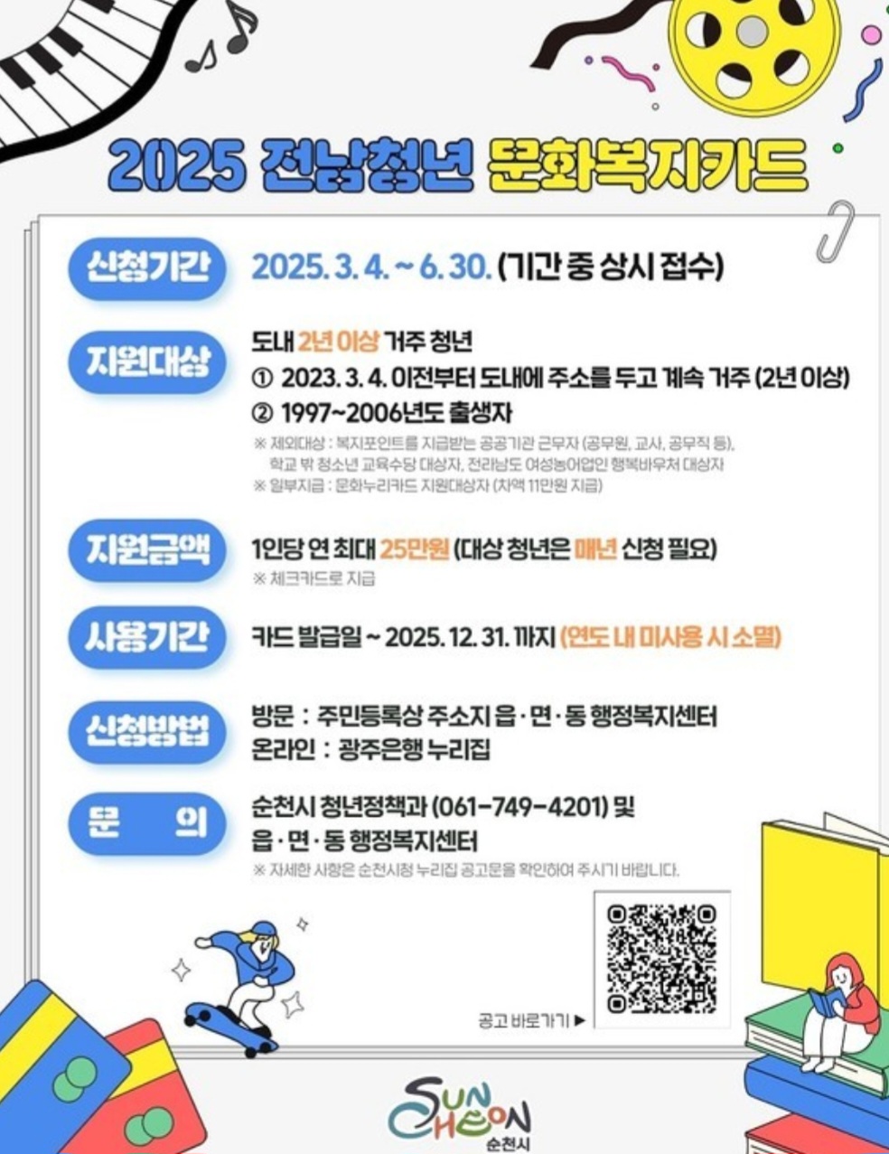 전남청년 문화복지카드, 누가 받을 수 있을까요? 2025년 순천시에서 진행하는 이 사업의 지원 대상을 꼼꼼하게 알아보겠습니다.